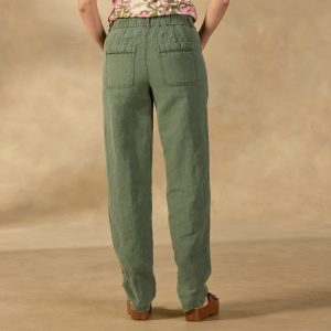 These breezy. wide-leg pants have a drawstring waist with rope tie. Linen/rayon. Dry clean. Made in USA. Sizes XS (0-2). S (4-6). M (8-10). L (12-14). XL (16-18). 30 inseam. 12rise. 15 leg opening.