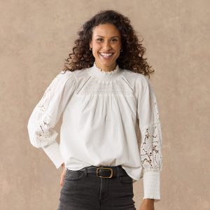 Subtle details make this allover rib sweater so special. with a hand-crocheted yoke and picot trim at V-neckline. Recycled wool/merino wool/cotton/nylon. Hand wash. Imported. Exclusive. Sizes XS (0?C2). S (4?C6). M (8?C10). L (12?C14). XL (16?C18). XXL (20?C22). Approx. 22l.