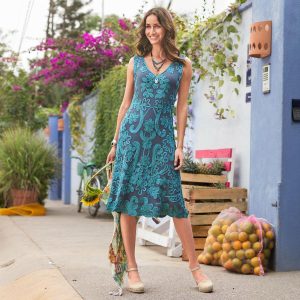 Hearts skip a beat over this romantic rayon dress with jersey body and mesh overlay. Woven. ribbon appliqué adds an unrivaled elegance. Classic fit with full skirt. Nylon/rayon/spandex. Dry Clean. but for best results Sundance recommends garment to be hand washed. Imported. Exclusive. Sizes XS (0-2). S (4-6). M (8-10). L (12-14). XL (16-18). XXL (20-22). Approx. 42l.