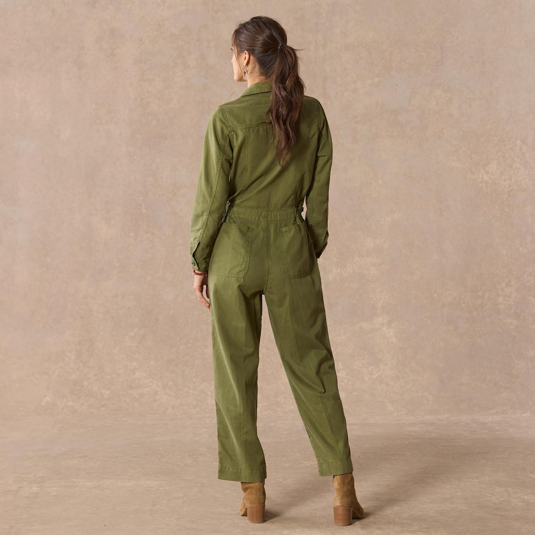 Super soft and lightweight. our utility jumpsuit drapes beautifully. with six pockets. center front buttons and zip fly and adjustable side tabs at waist for the perfect fit. Cotton/lyocell. Machine wash. Imported. Exclusive. Sizes XXS (00). XS (0–2). S (4–6). M (8–10). L (12–14). XL (16–18). 25 inseam.