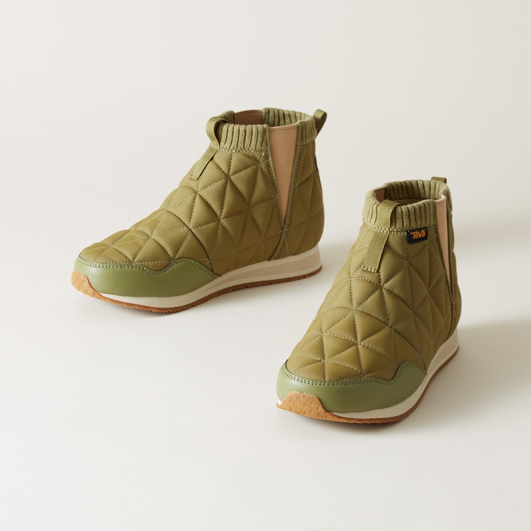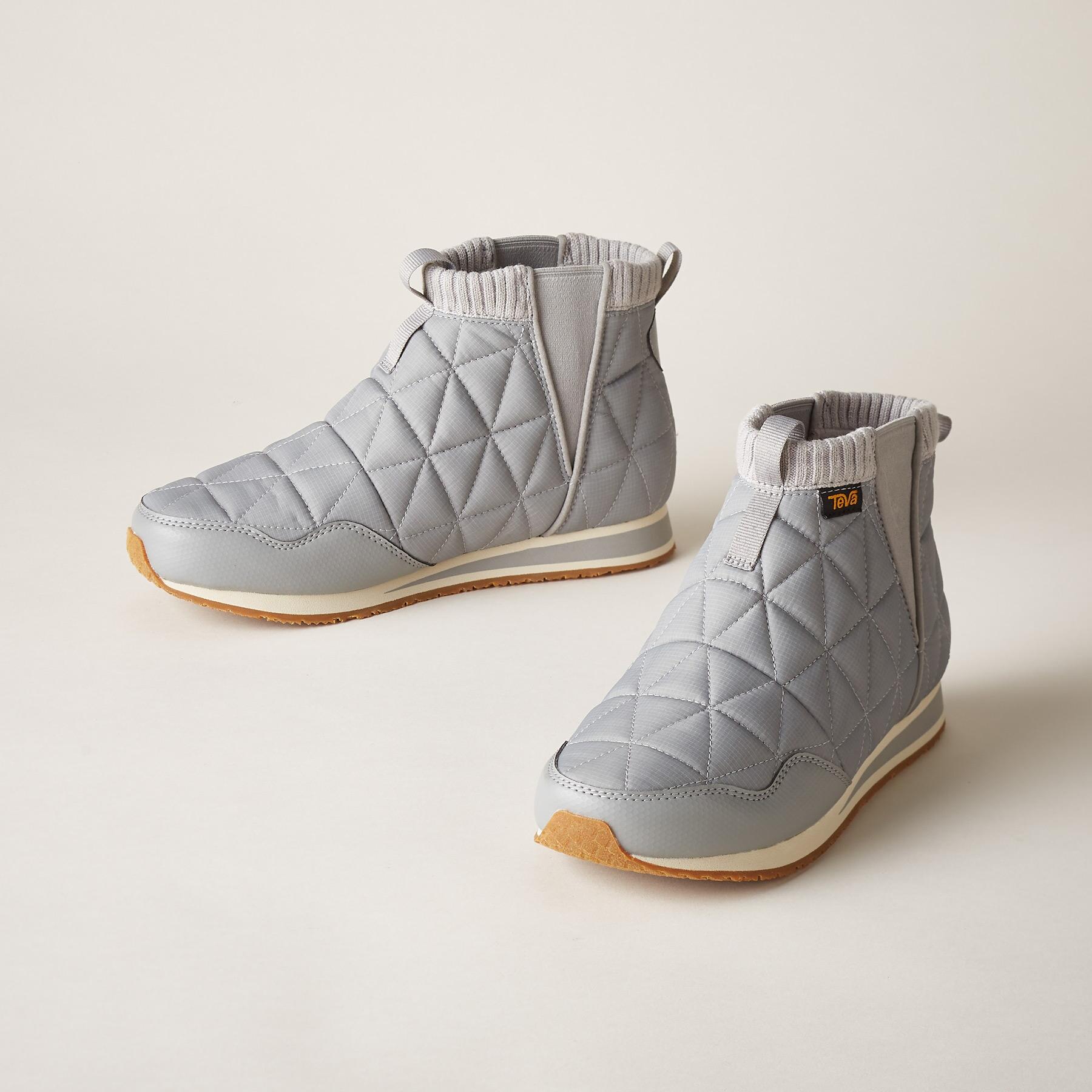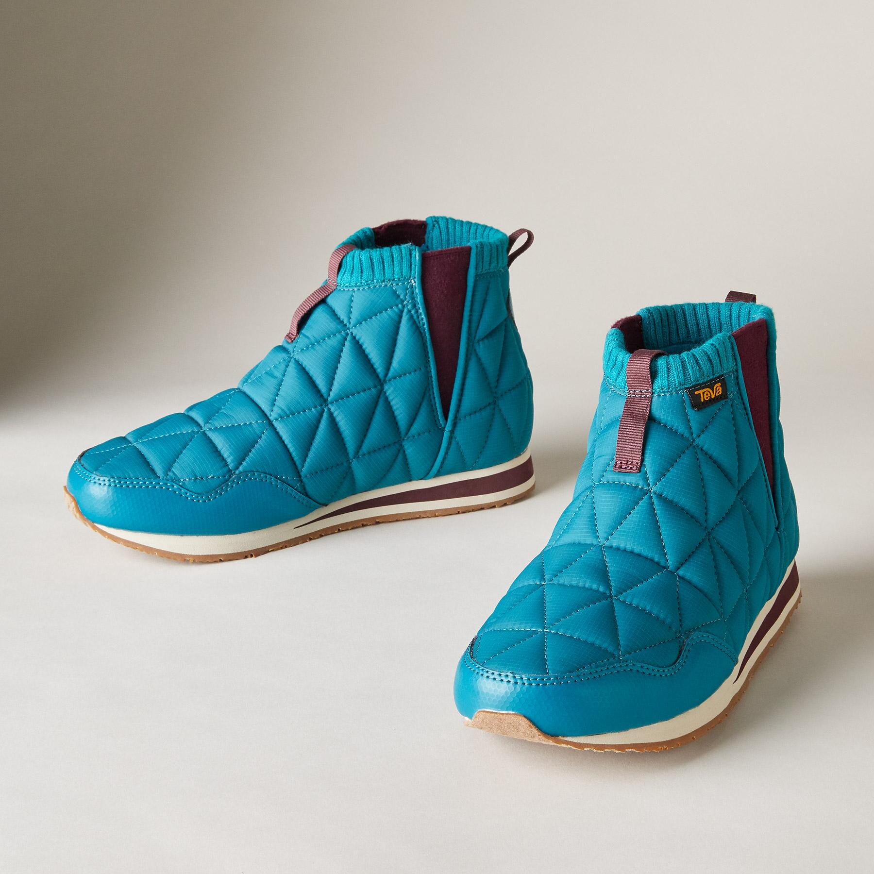 Teva® brings quilted comfort to these sporty and lightweight ‘Ember’ boots. heralded as the lovechild of a sleeping bag and a sneaker. The ultimate travel companion. ultra packable. with flexible rubber soles. Textile. Imported. Whole sizes 6 to 11. 3/4 heel.