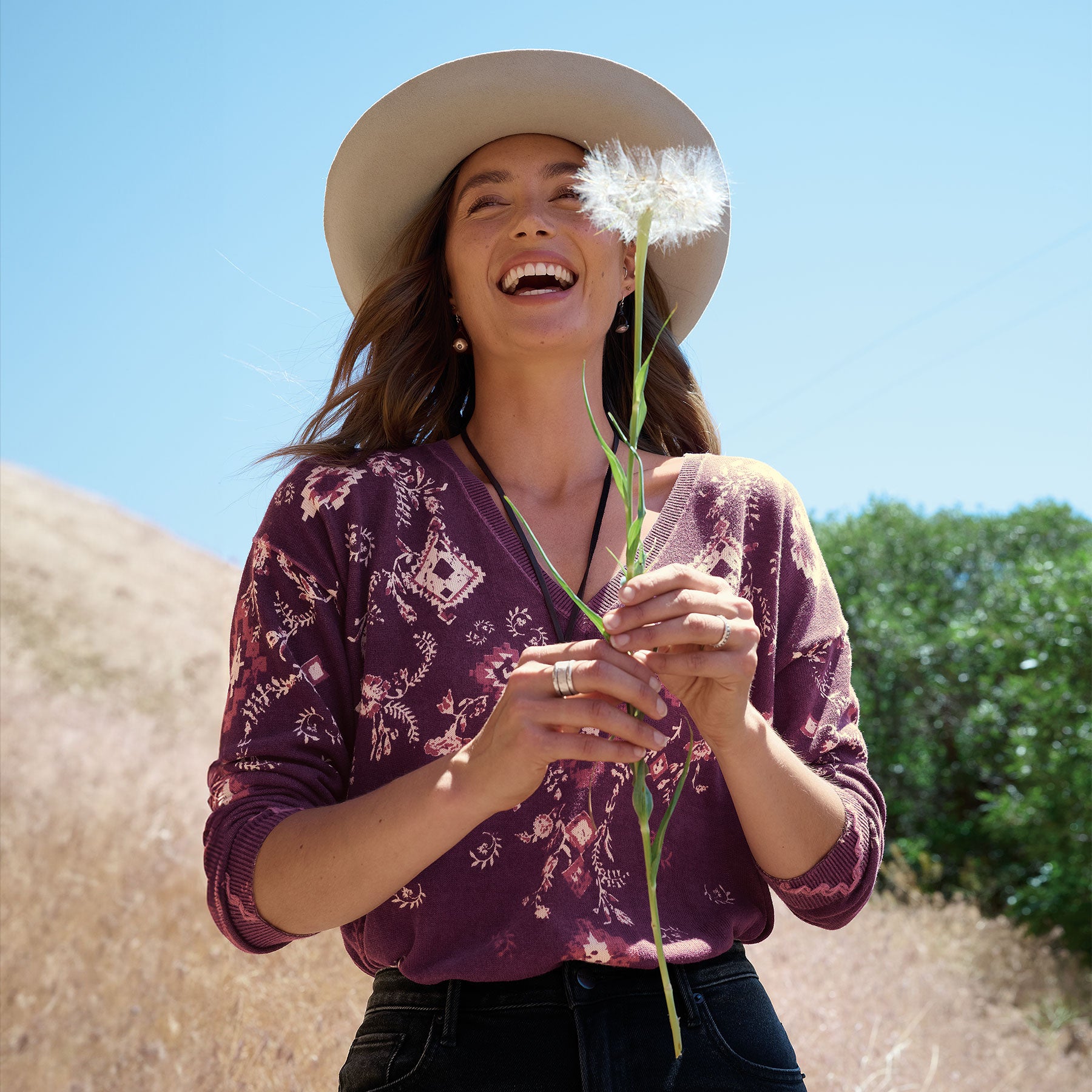 A new Sundance classic. with bandana/floral print front and back and hand-embroidered embellishment at the open V-neckline. Exposed seams. rib trim. relaxed fit. Cotton. Hand wash. Imported. Exclusive. Sizes XS (0–2). S (4–6). M (8–10). L (12–14). XL (16–18). XXL (20–22). Approx. 24l.