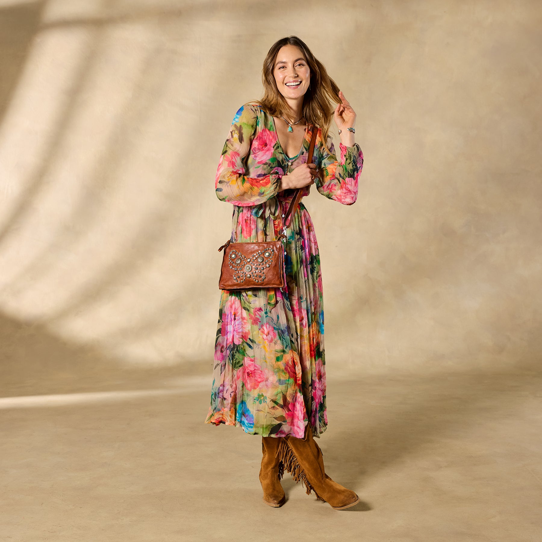 Be a heavenly vision wherever you go in our floaty Halcyon maxi. A vibrant exploded floral pattern further elevates an already stunning jacquard fabric; with shell buttons. elastic cuffs. removable belt and separate printed slip. Viscose. Machine wash. Imported. Exclusive. Sizes XXS (00). XS (0?C2). S (4?C6). M (8?C10). L (12?C14). XL (16?C18). Approx. 49l.