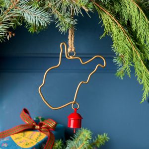 Represent your favorite state on the tree this year with a handcrafted ornament outlined and shaped to artisan perfection. Each U.S. state shape is intricately created and includes an expertly crafted and tuned bell. All 50 states available. Brass/iron/jute. Imported. Exclusive. Sizes vary depending on which state shape is chosen. range from 2w to 4.75w x 2l to 4.75l.