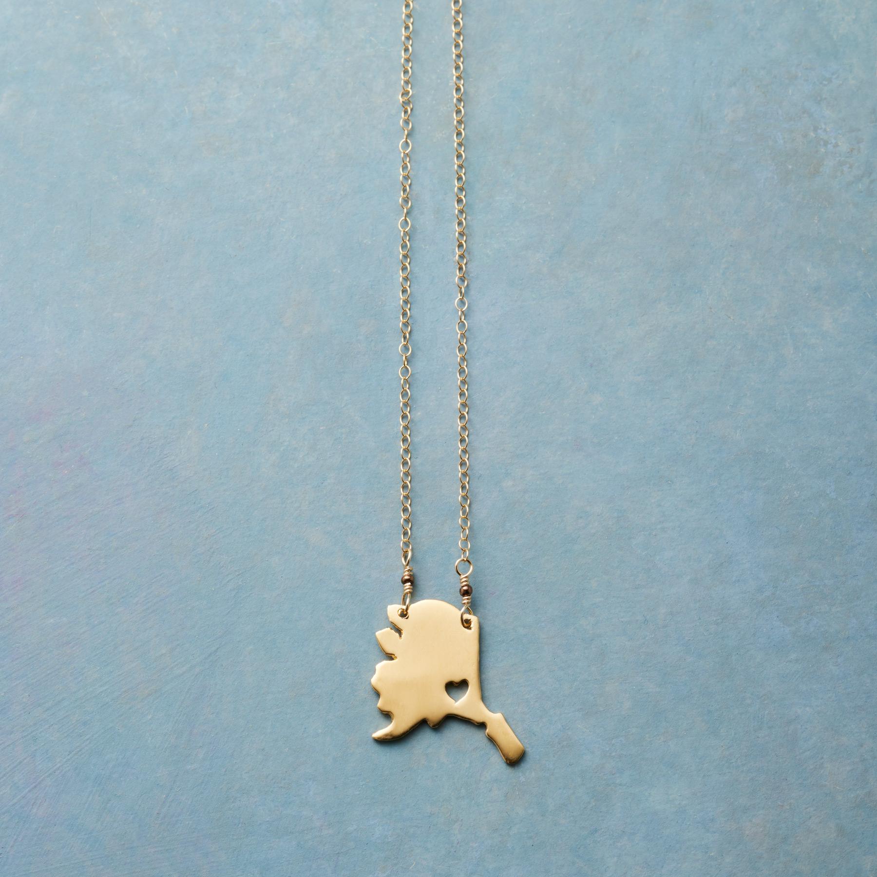 Celebrate your favorite state with our 18kt gold-plated charm strung on a 14kt gold-filled chain. A cut-out heart shows your love. Lobster clasp. Handcrafted. Exclusive. 17-18l